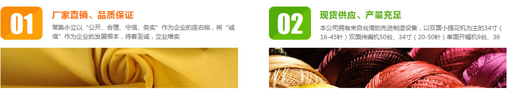 公司成立于1997年,坐落于風景秀麗的虞山腳下,位于中國經(jīng)濟最活躍的版圖--長江三角洲經(jīng)濟技術開發(fā)區(qū)的黃金地段上,常熟市永立針紡織有限公司,伴隨著中國針紡織品行業(yè)蓬勃發(fā)展,走過了10多年的創(chuàng)業(yè)歷程,如今已發(fā)展成為一家集工、貿于一身,在行業(yè)內聞名遐邇的專業(yè)生產(chǎn)滌綸針織面料的特色企業(yè)。本公司擁有來自臺灣的先進制造設備,以雙面小提花機為主的34寸(16--45針)雙面緯編機50臺、34寸(20--50針)單面開幅機9臺、36寸 22針德國邁耶OVJE雙面電腦大提花機6臺及其他先進設備。憑借著一流的設備,以及“人無我有,人有我好,人好我轉”的經(jīng)營理念,常熟永立一直致力于滌綸面料的創(chuàng)新...